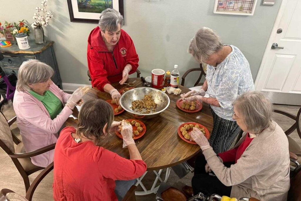 Recently, residents rolled up their sleeves to make oatmeal and chocolate chip balls during a “snack-tivity” session. The process of mixing ingredients and shaping the treats offered a chance to be part of something hands-on and tasty. Later in the week, the group switched gears to crafting sunflowers, giving residents an opportunity to focus on simple but satisfying handiwork.
