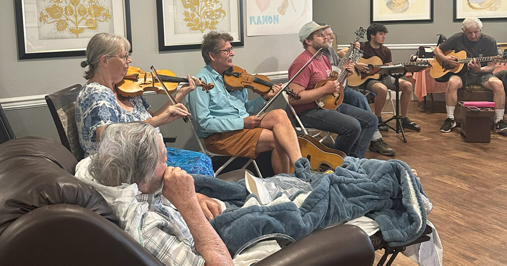 In a moment that felt more like a home concert than a goodbye, 87-year-old Ramon V. filled the Aspen Dining Room at The Chateau at Gardnerville with the unmistakable sound of his harmonica one last time. Just two days before his passing in June, Ramon’s final wish came true — he played alongside the friends